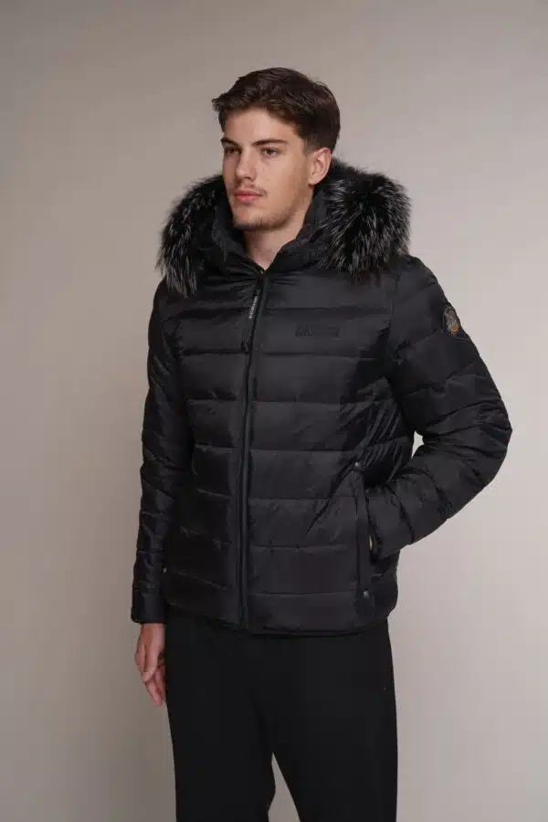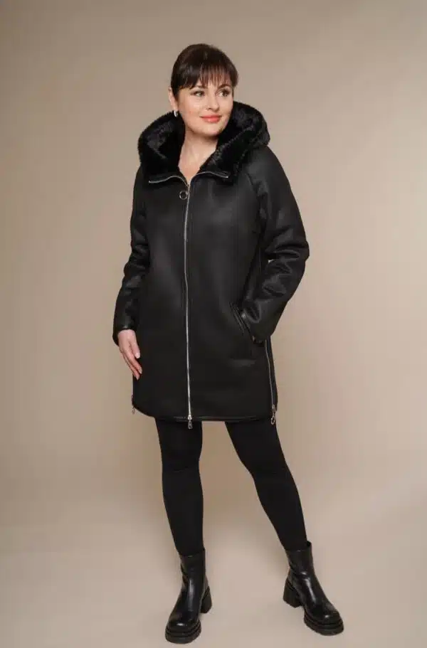Art 105 | Winterjacke | mittelkurz | Damen | schwarz | Kapuze | Silberfuchs | 44. DE-GR