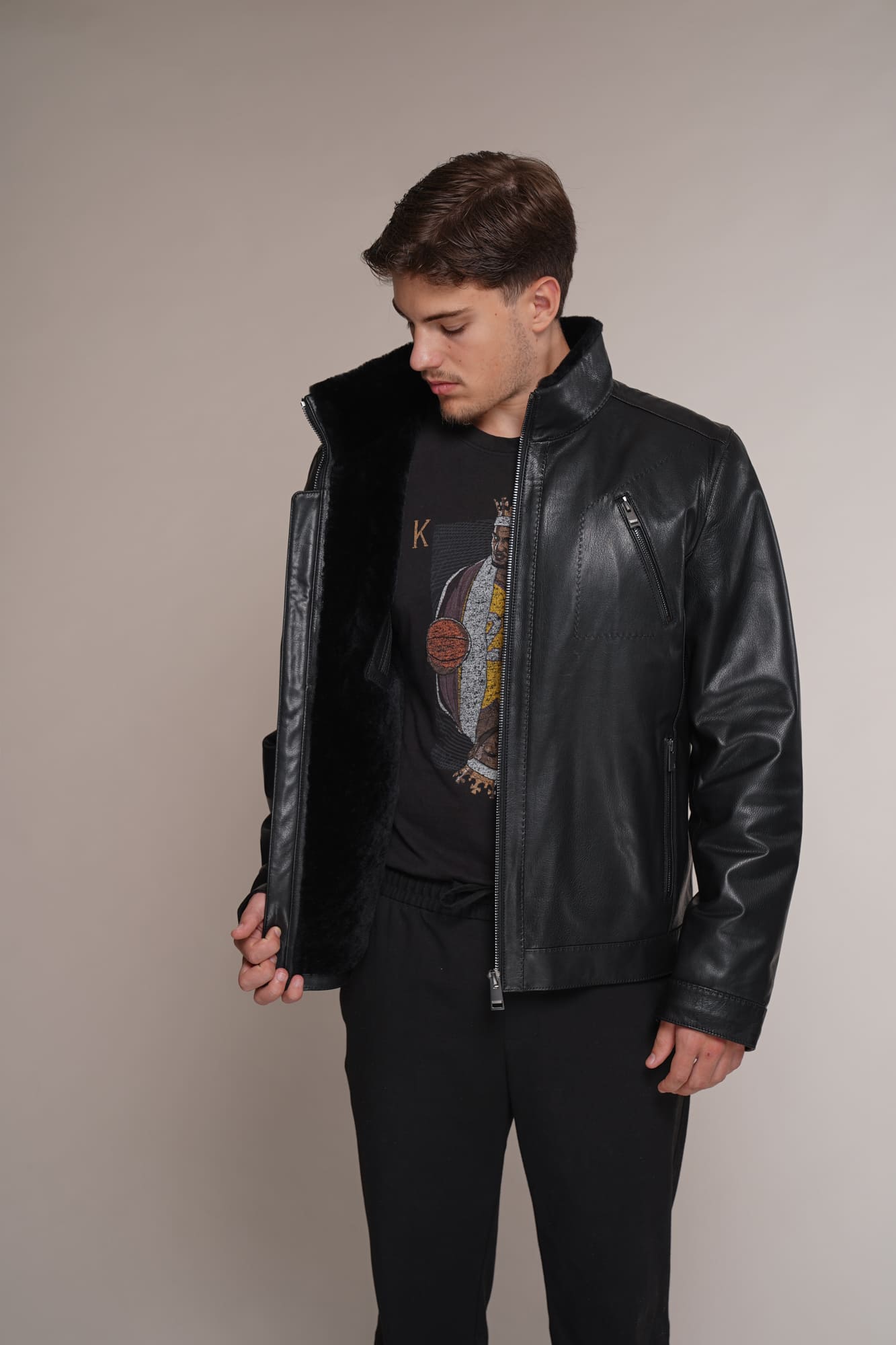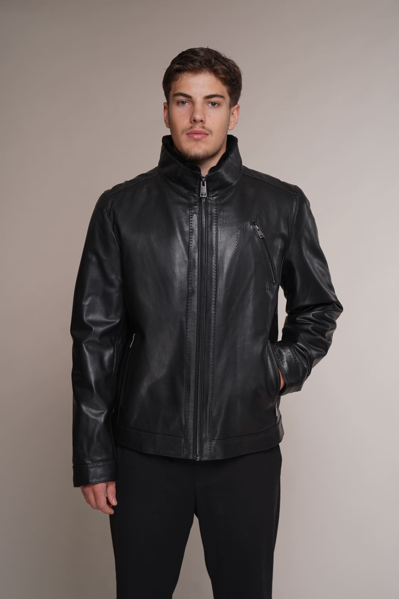 schwarz | Stehekragen | 70 cm. | Reißverschluss | 2 Außentaschen