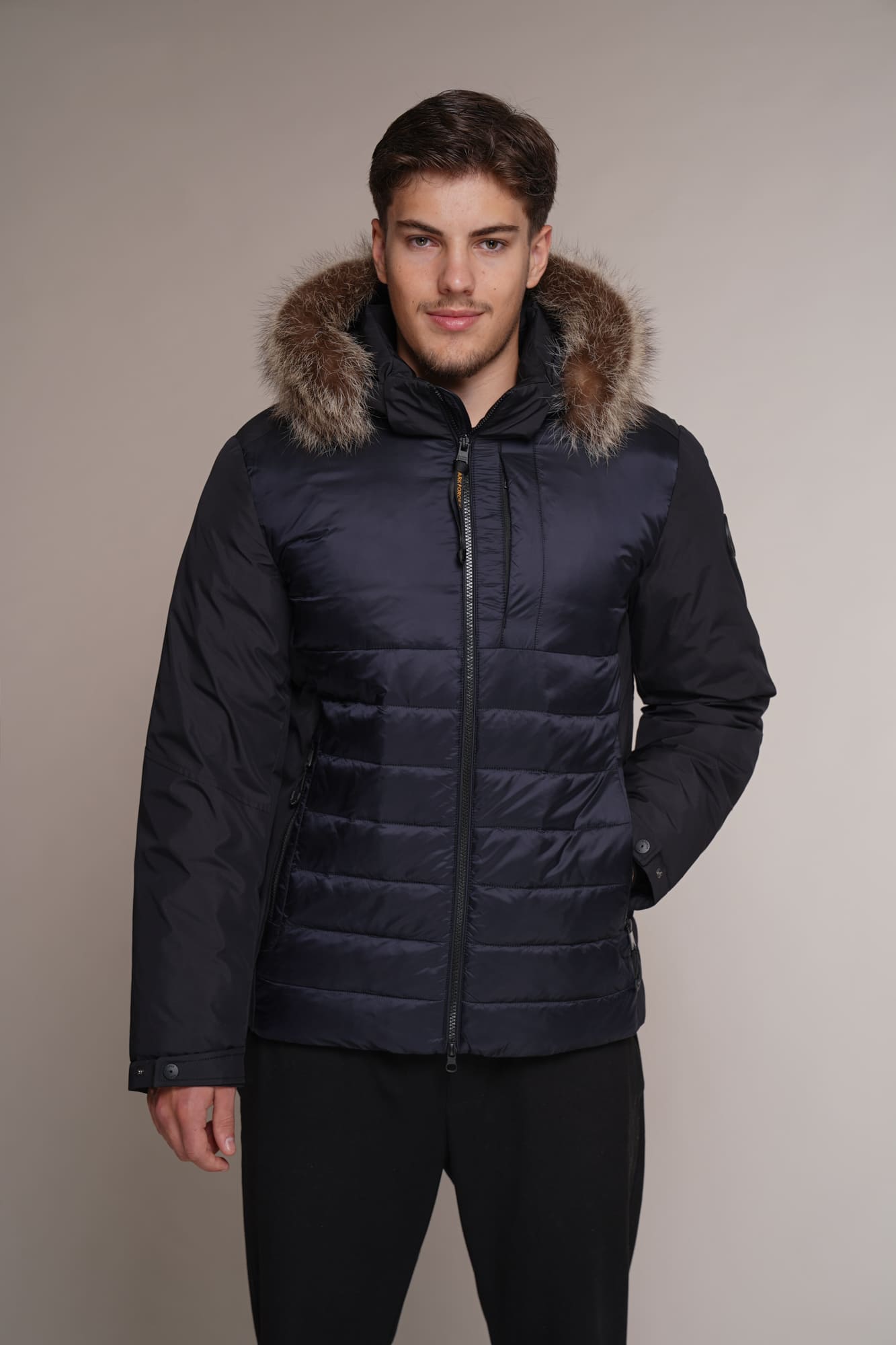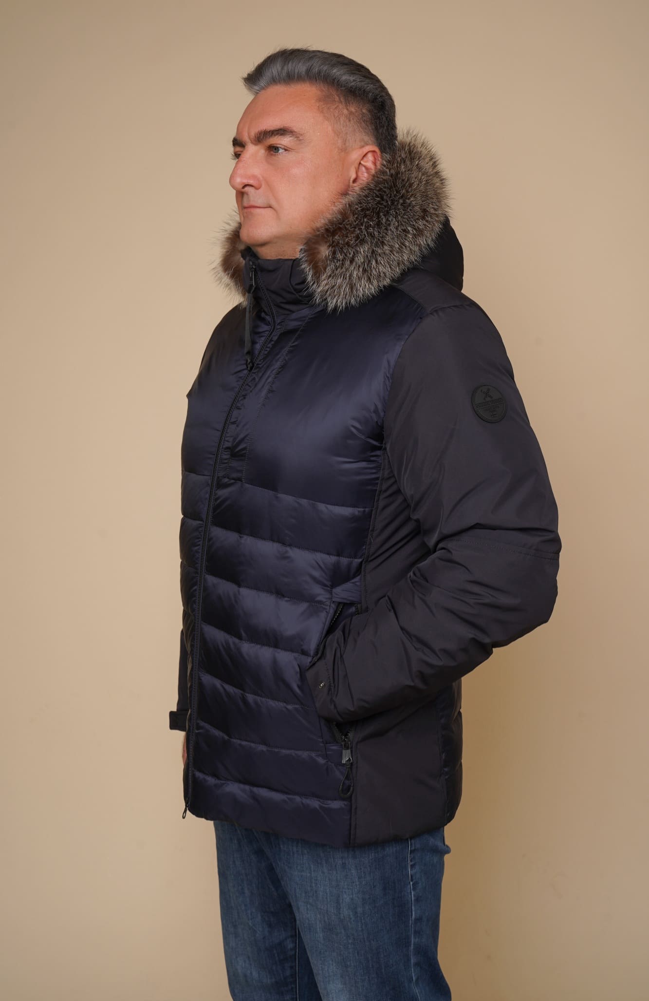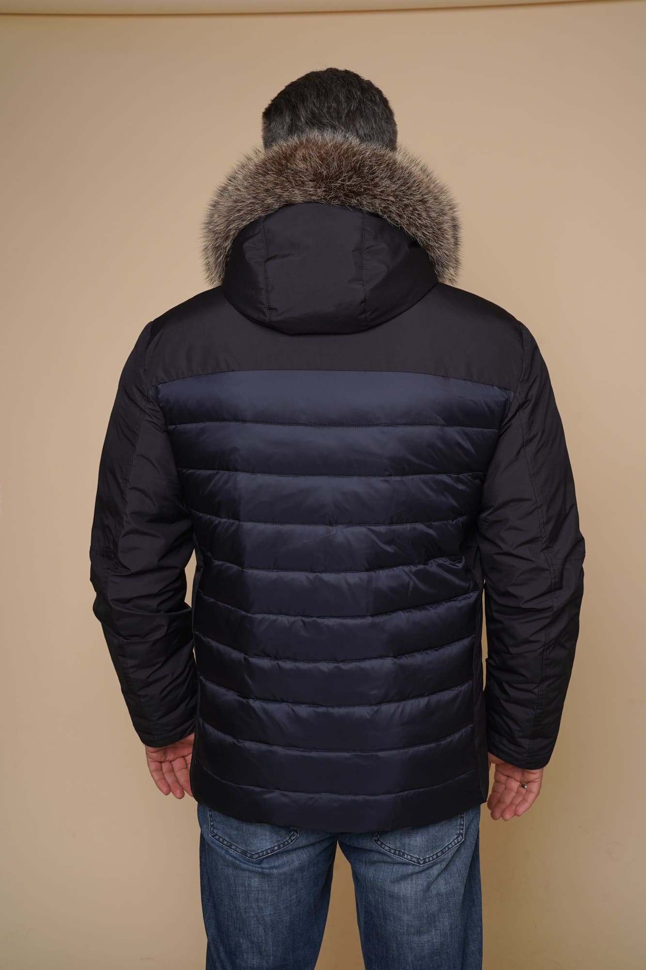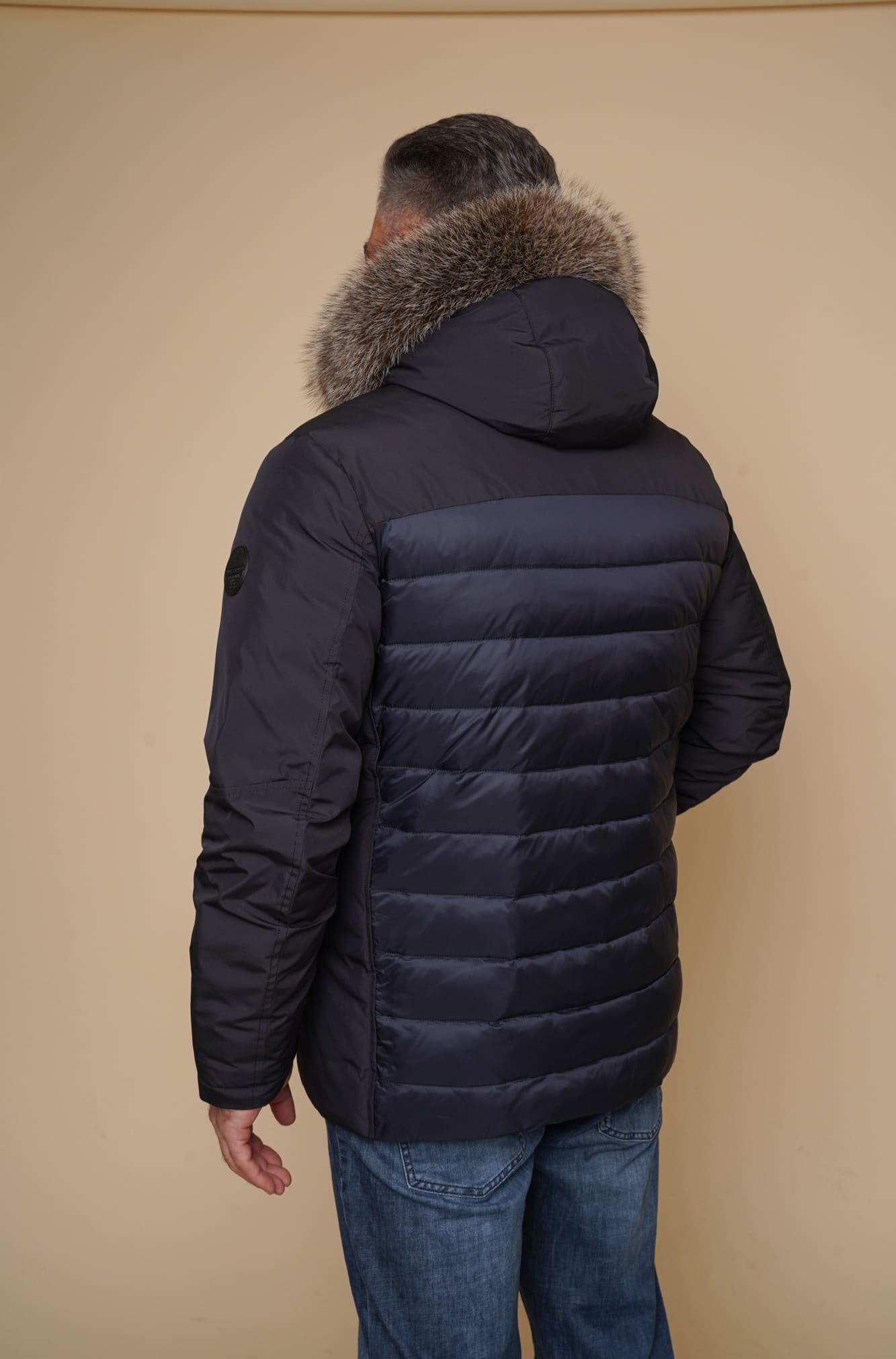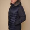 blau | Kragen – Kanadischer Waschbär | 75 cm. | Reißverschluss | abnehmbare Kapuze | 2 Außentaschen