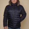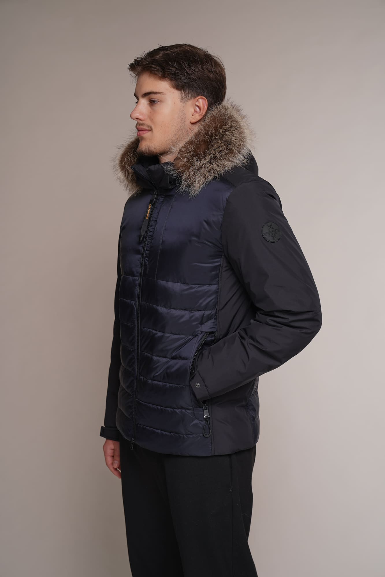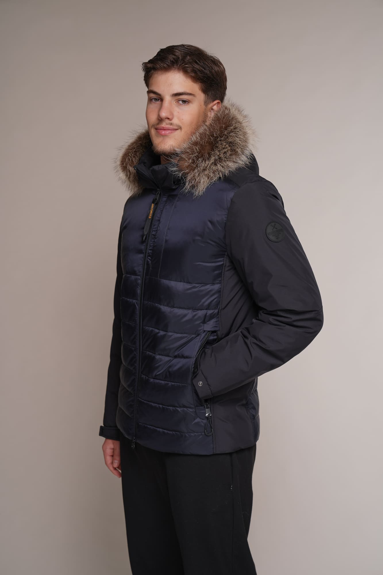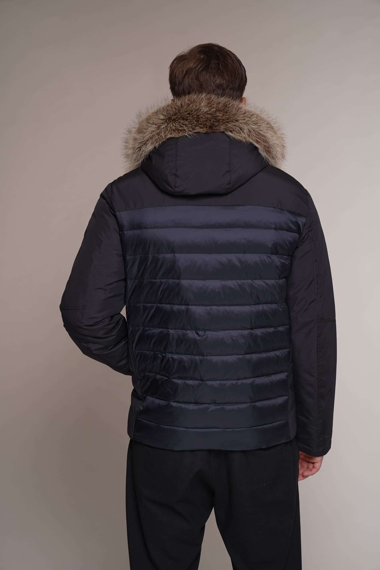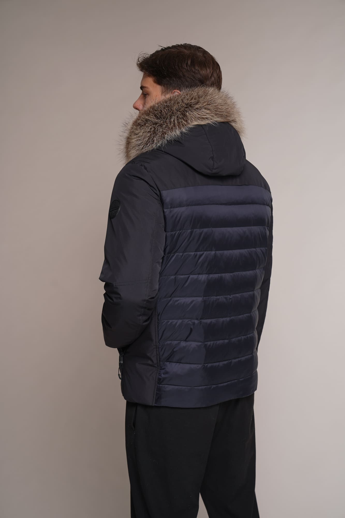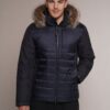 blau | Kragen – Kanadischer Waschbär | 75 cm. | Reißverschluss | abnehmbare Kapuze | 2 Außentaschen