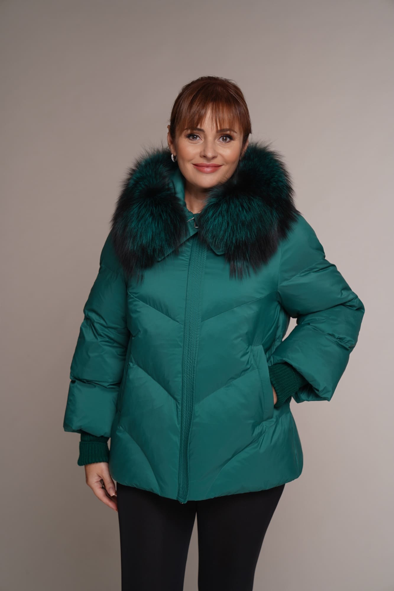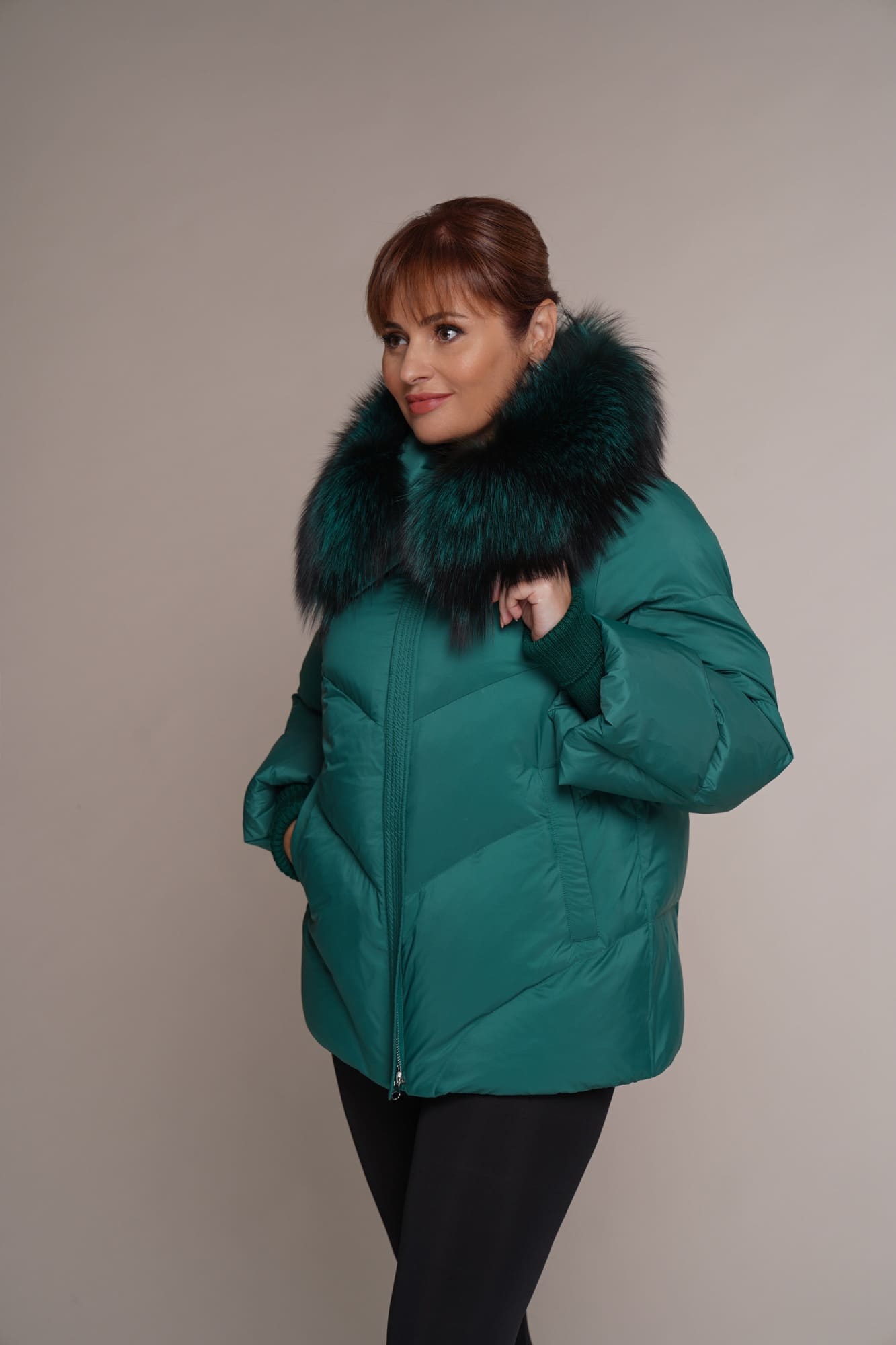 Smaragd | Kragen – Fuchs | 70 cm. | Reißverschluss | 2 Außentaschen