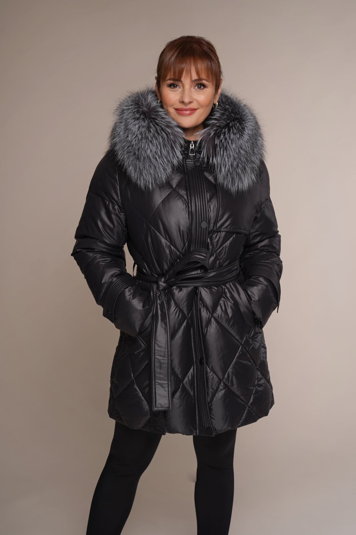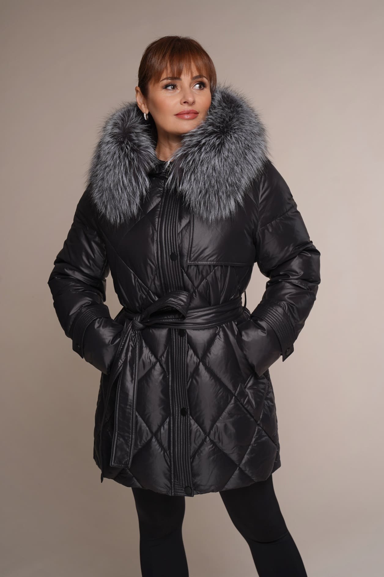 schwarz | Silberfuchs | 80 cm. | Reißverschluss | 2 Außentaschen