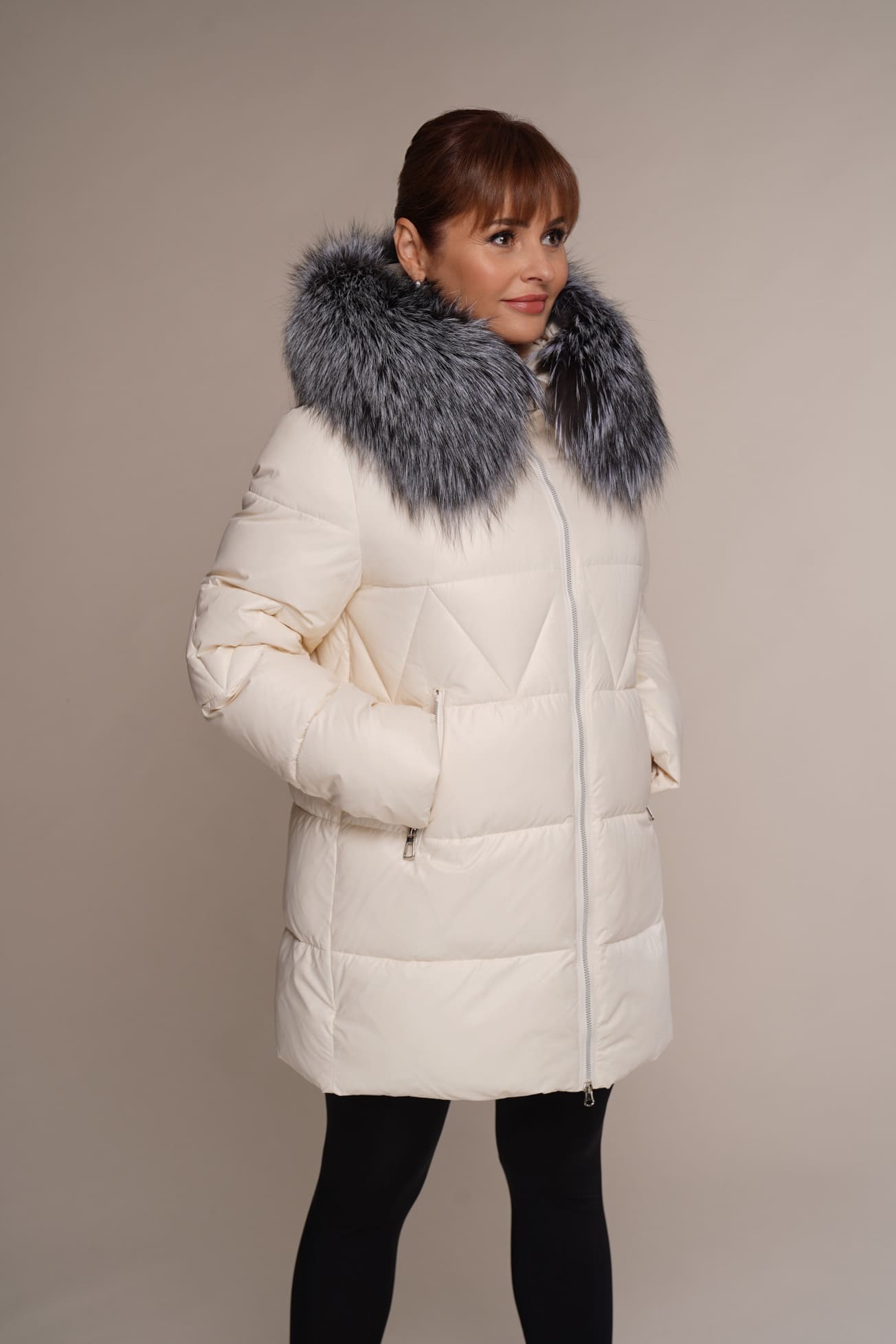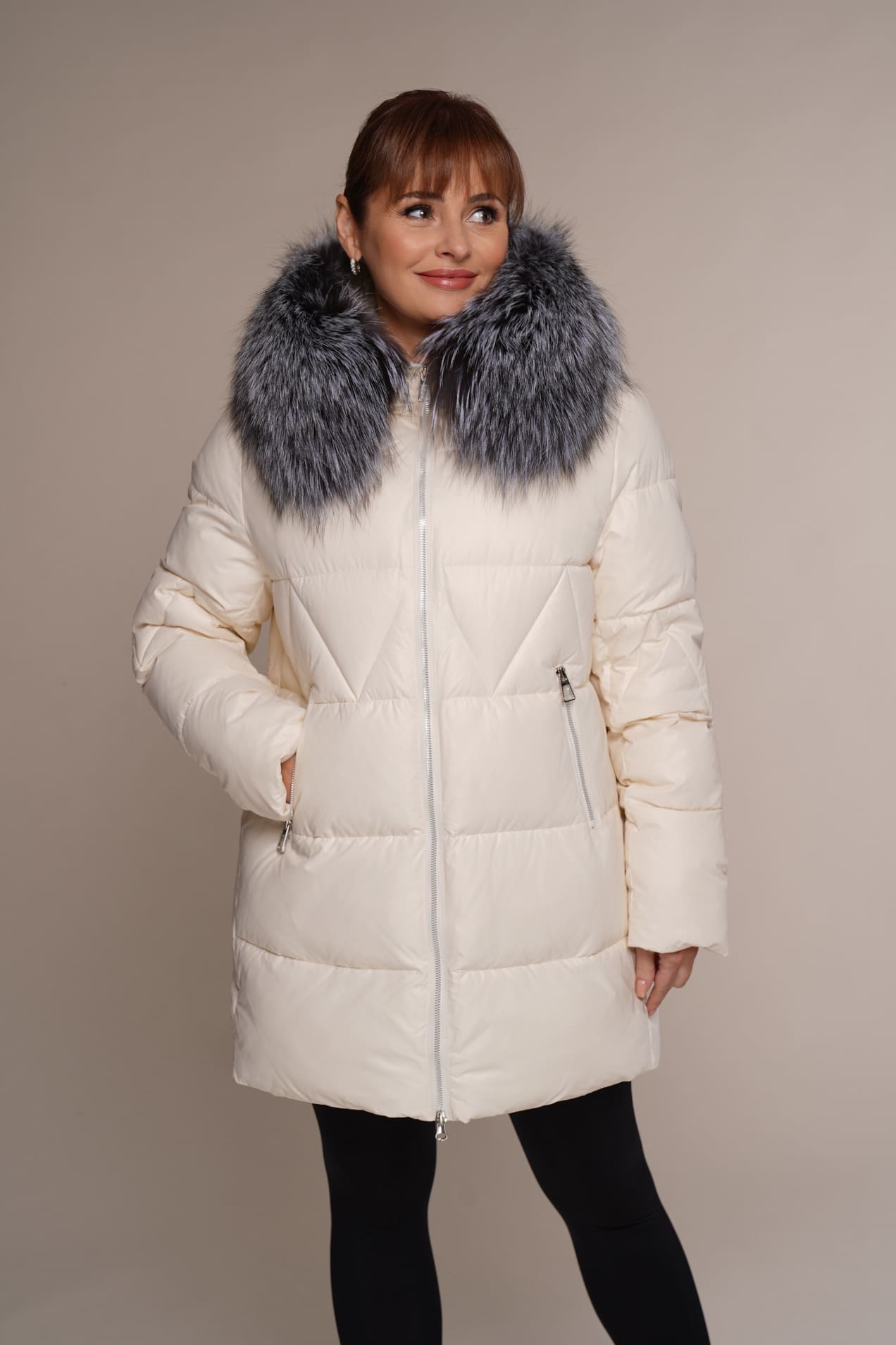 Creme | Silberfuchs | 80 cm. | 2W. Reißverschluss | 2 Außentaschen