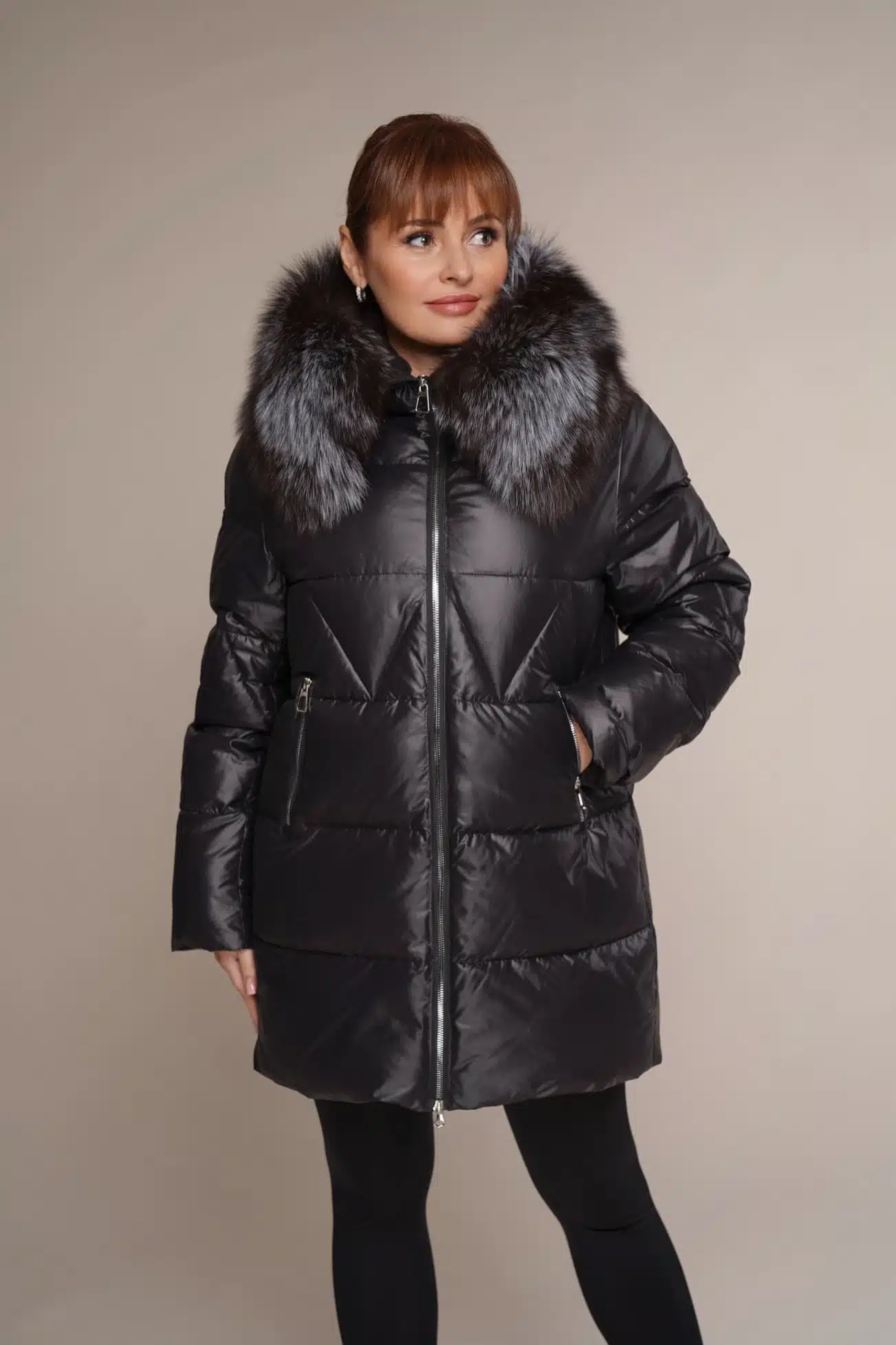 schwarz | Silberfuchs | 80 cm. | Reißverschluss | 2 Außentaschen