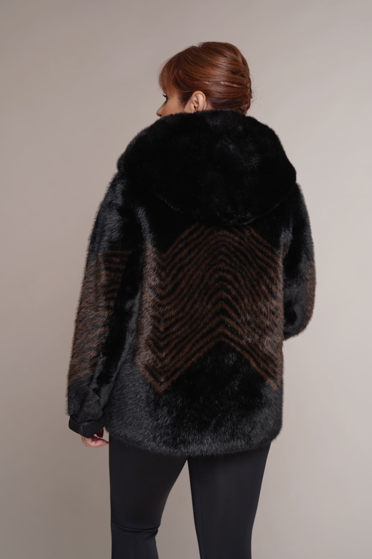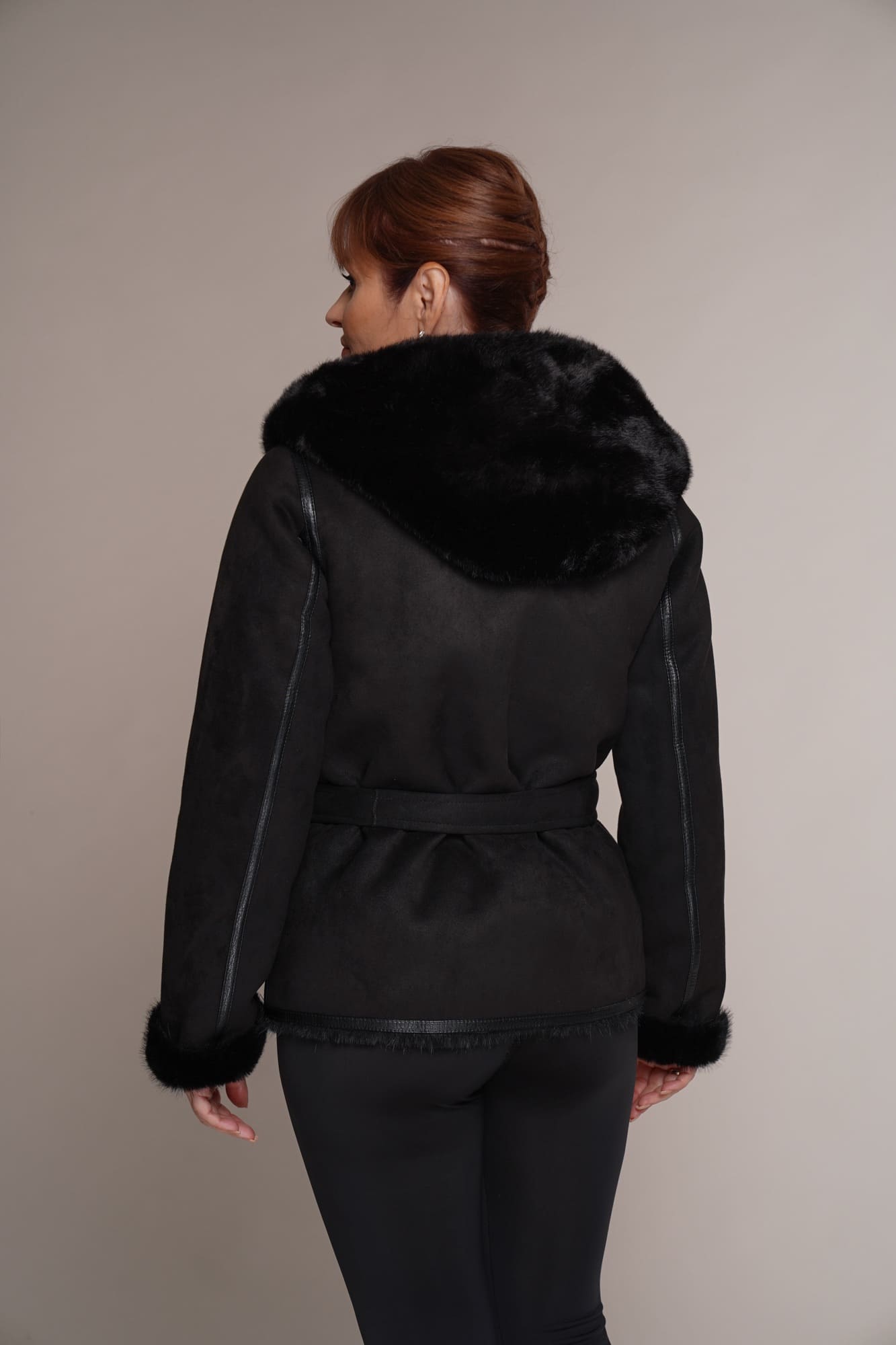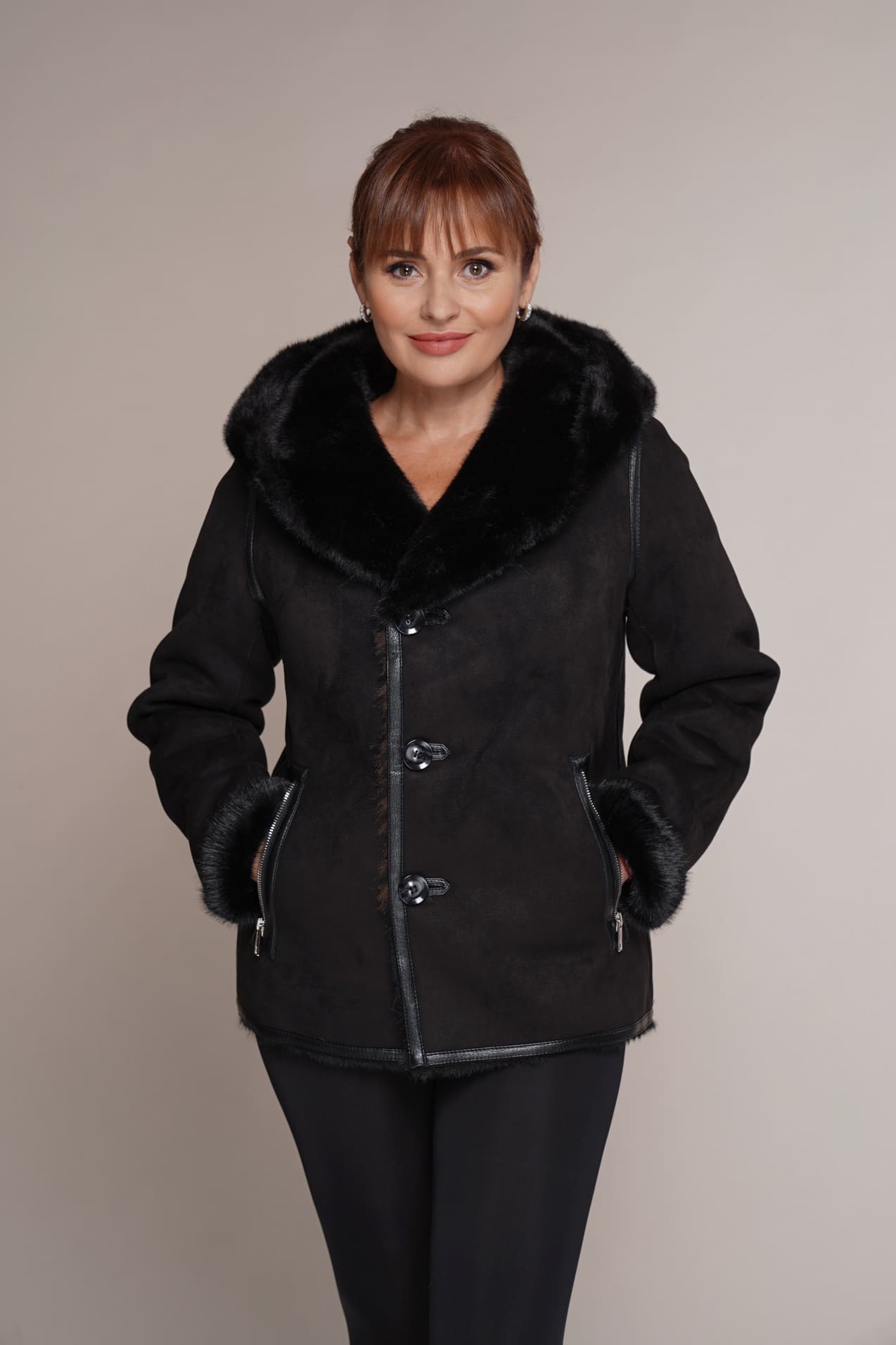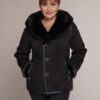 schwarz | Kunstleder | Kunstpelz | 65 cm. | Knopfverschluss | 2 Außentaschen