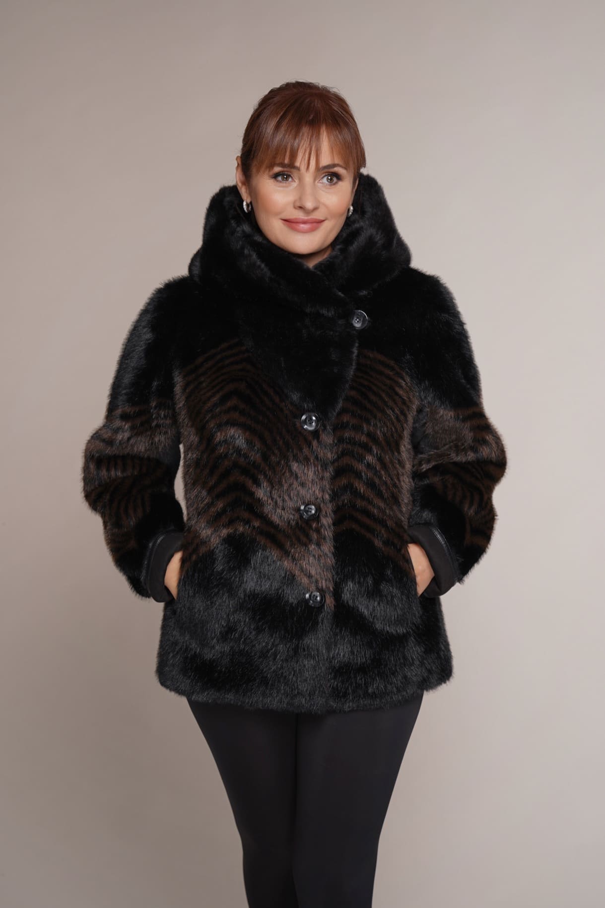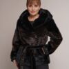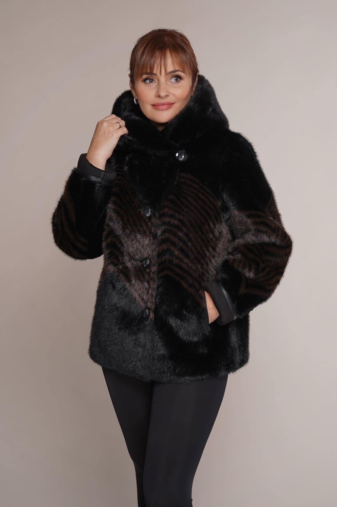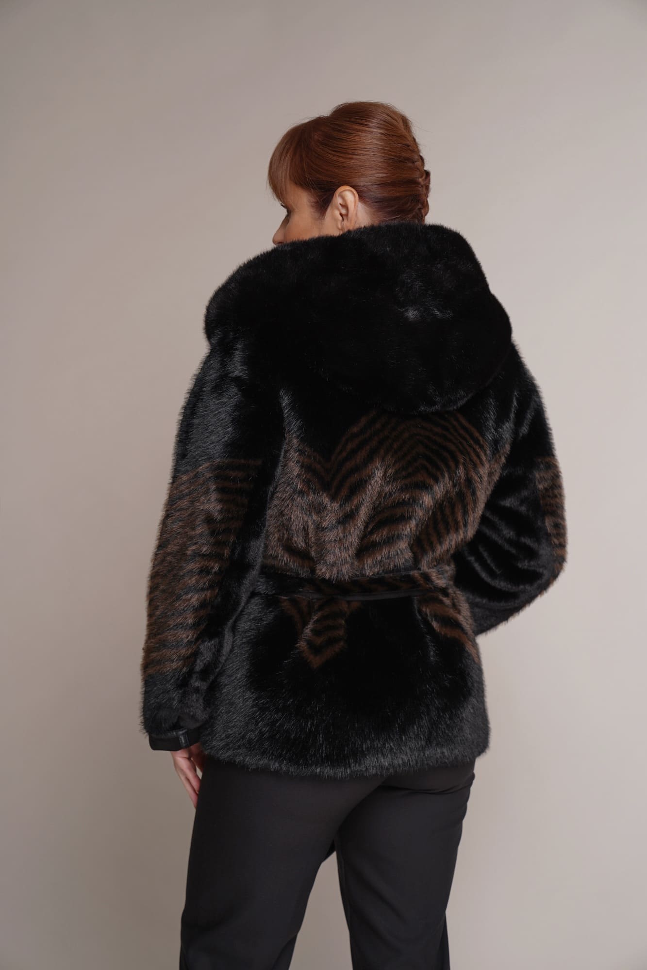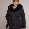 schwarz | Kunstleder | Kunstpelz | 65 cm. | Knopfverschluss | 2 Außentaschen
