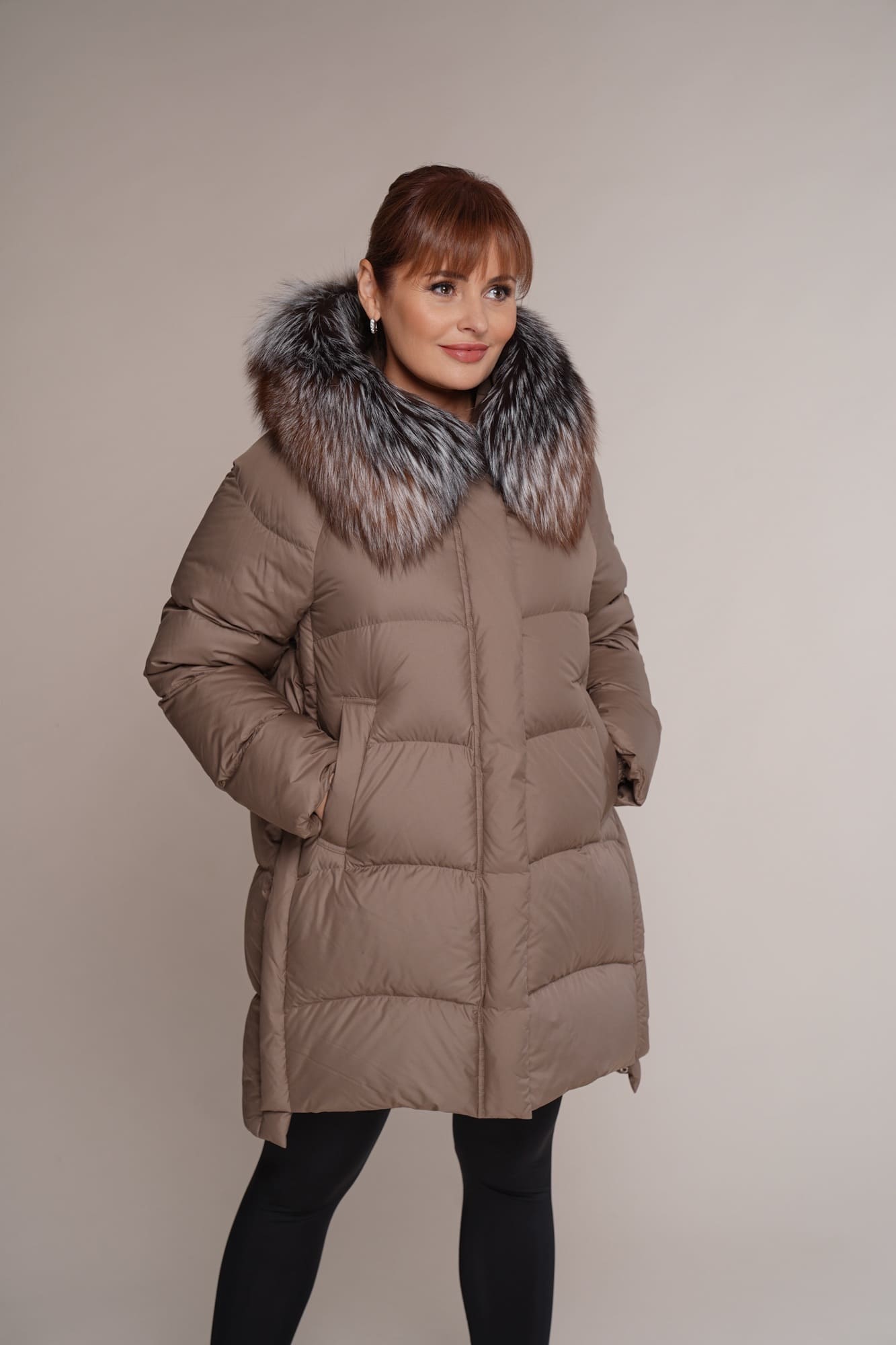 Cappuccino | Kragen – Fuchs | 90 cm. | 2W. Reißverschluss | 2 Außentaschen