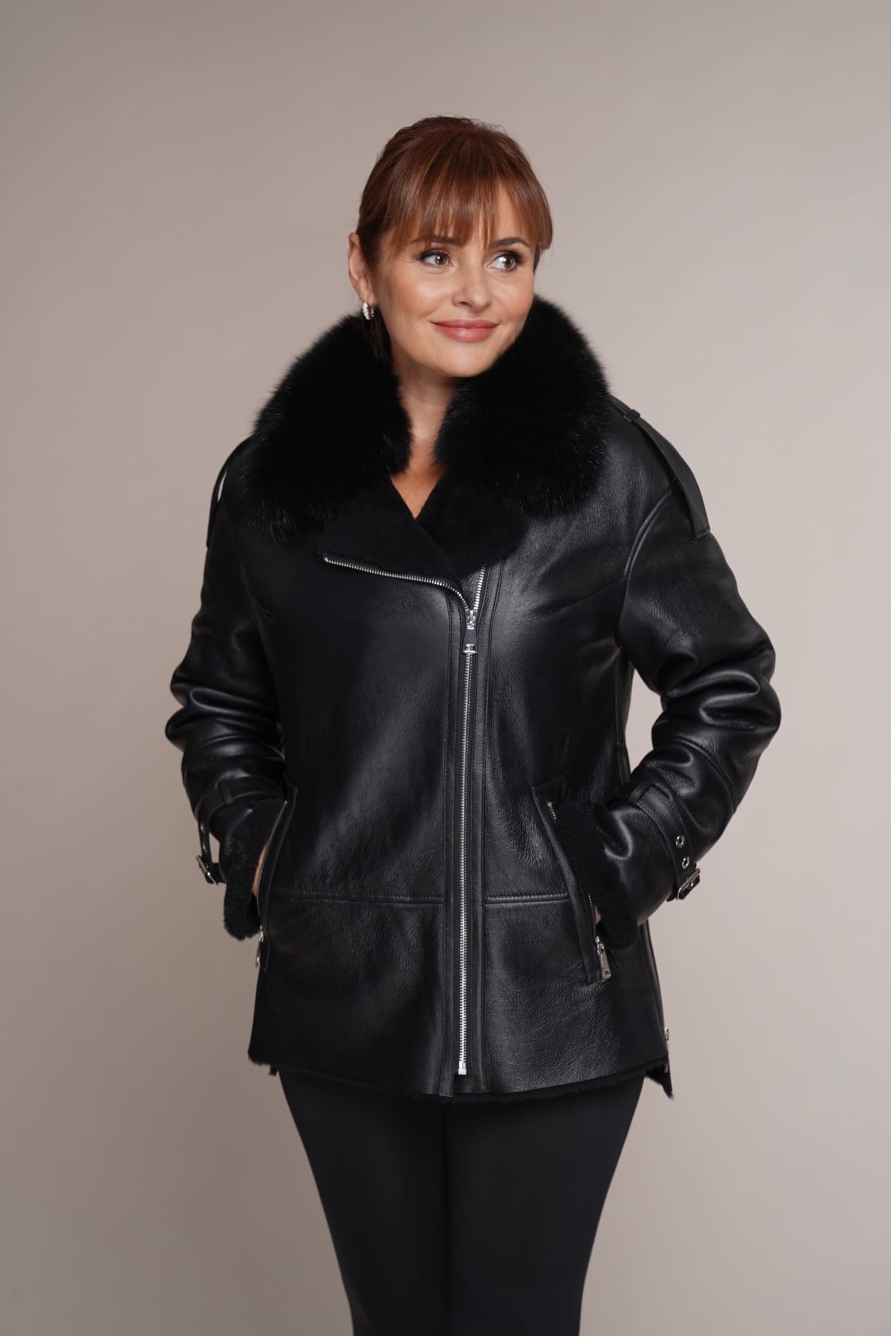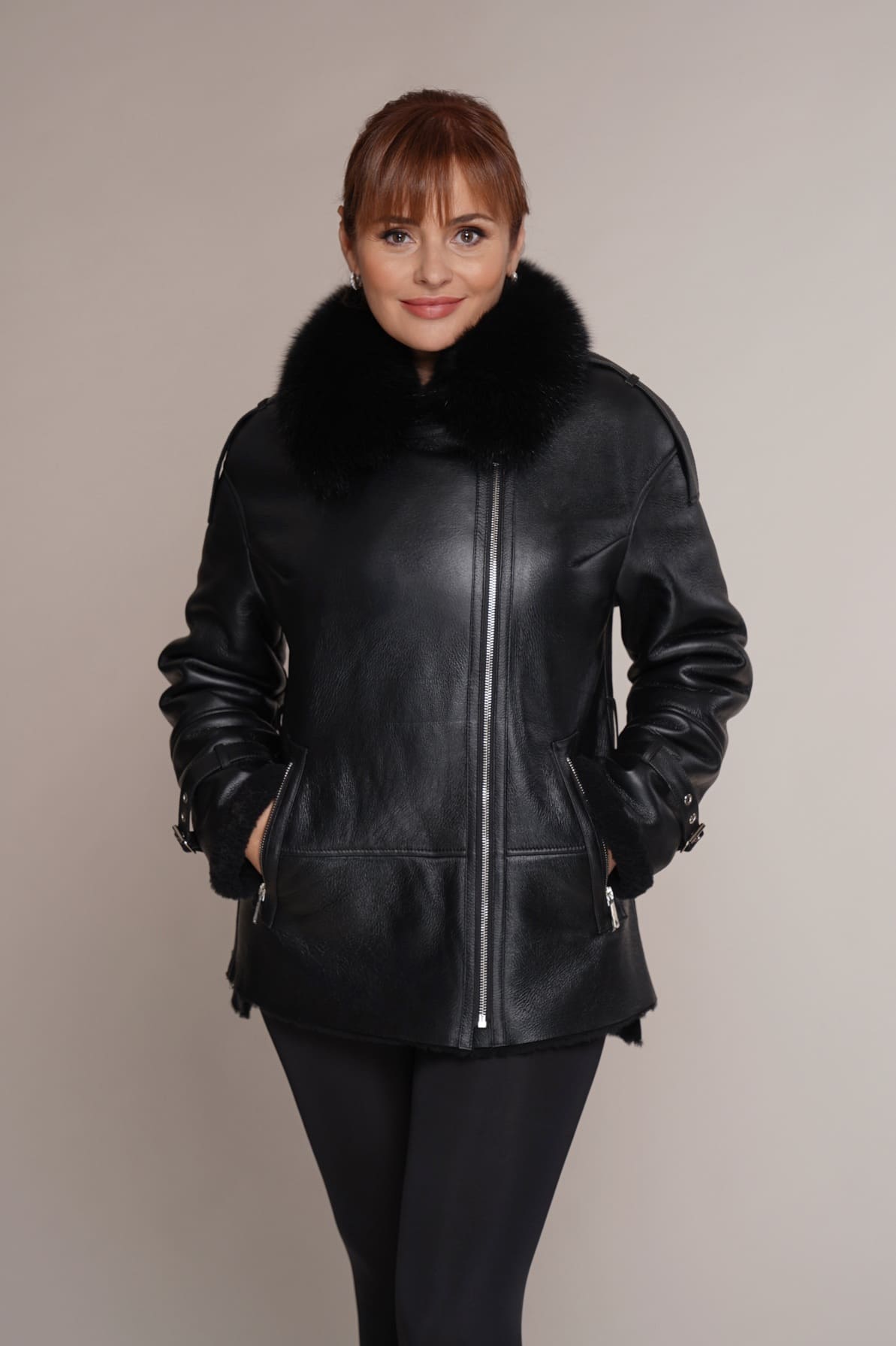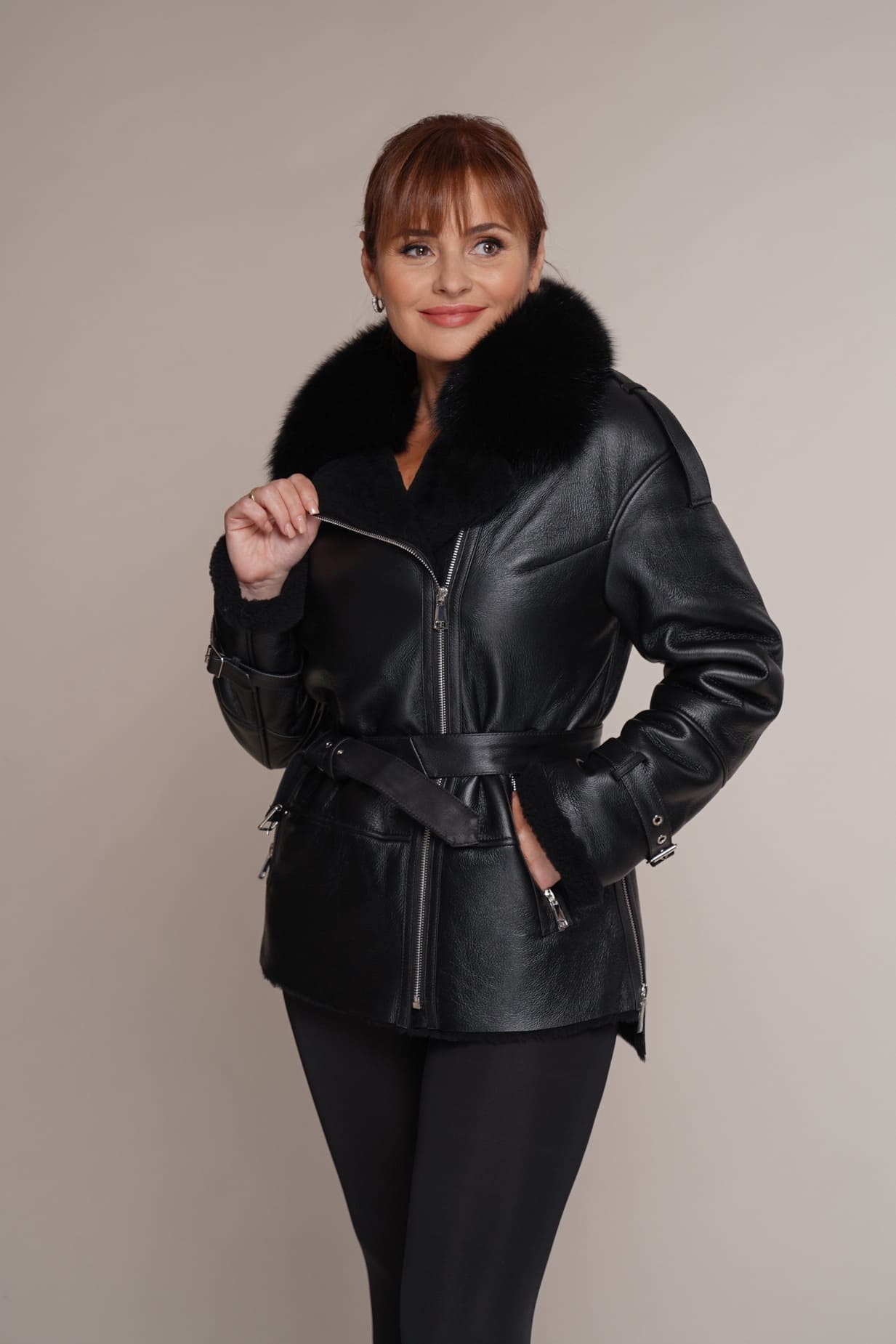Art 671 | Schaffelljacke | Winterjacke | Echtleder | Polarfuchs | Mouton | 46. DE-GR
