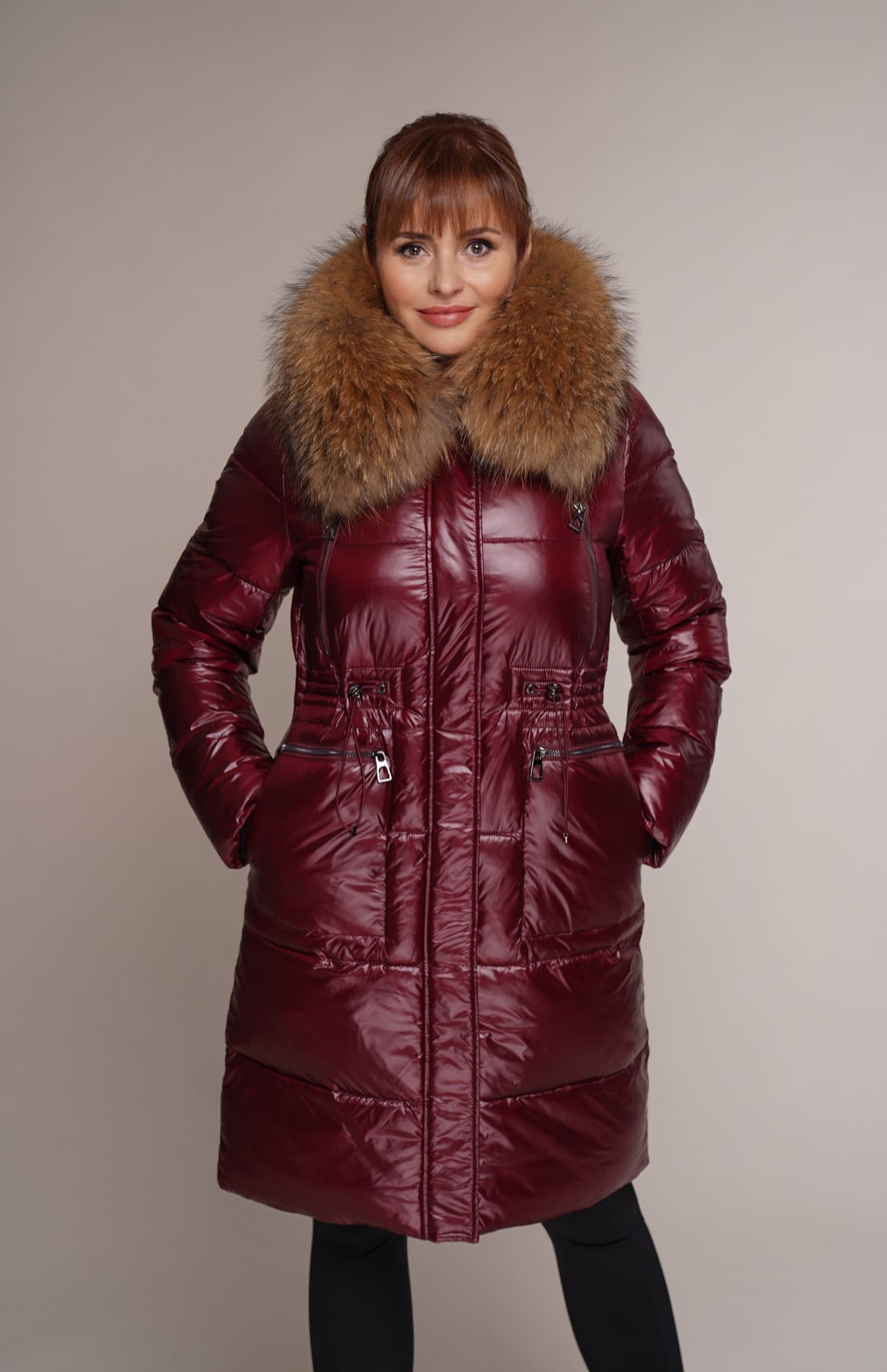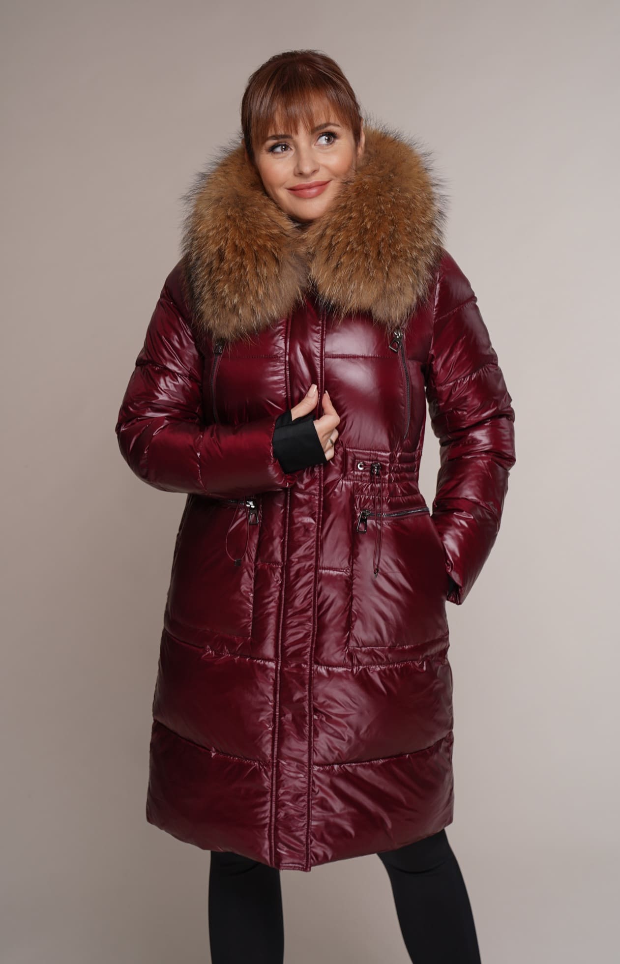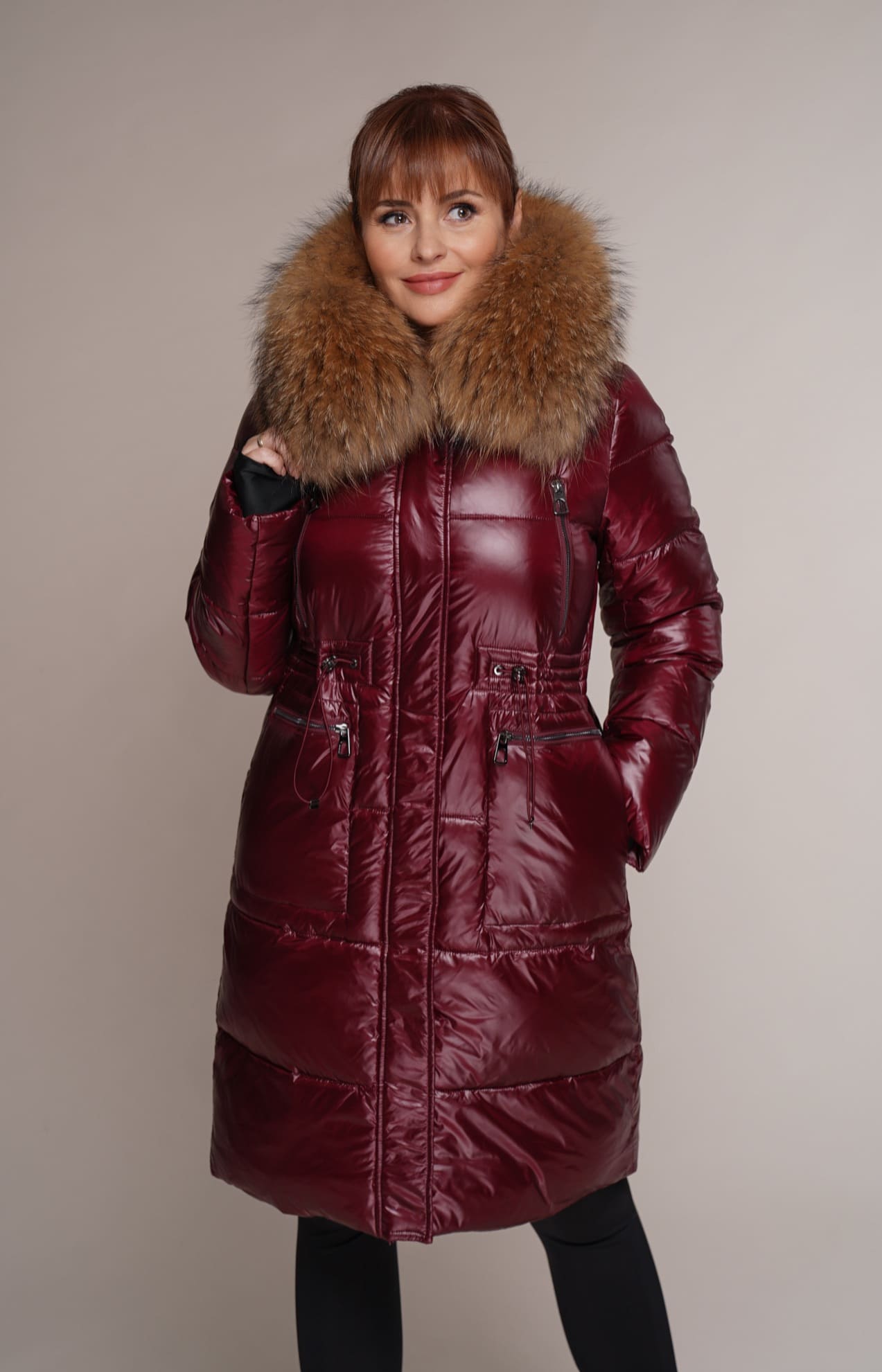weinrot | Kragen – Waschbär | 90 cm. | 2W. Reißverschluss | 6 Außentaschen