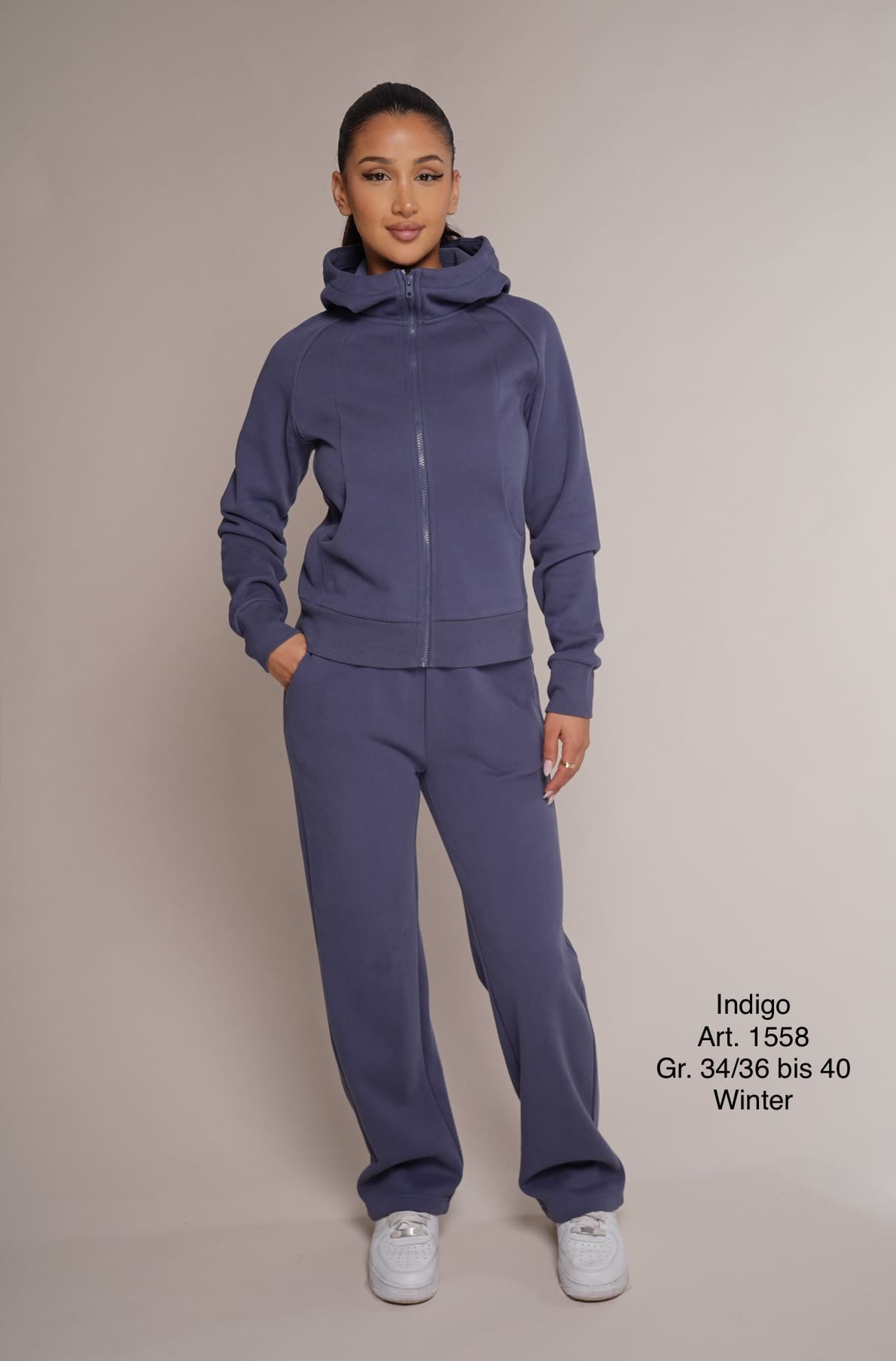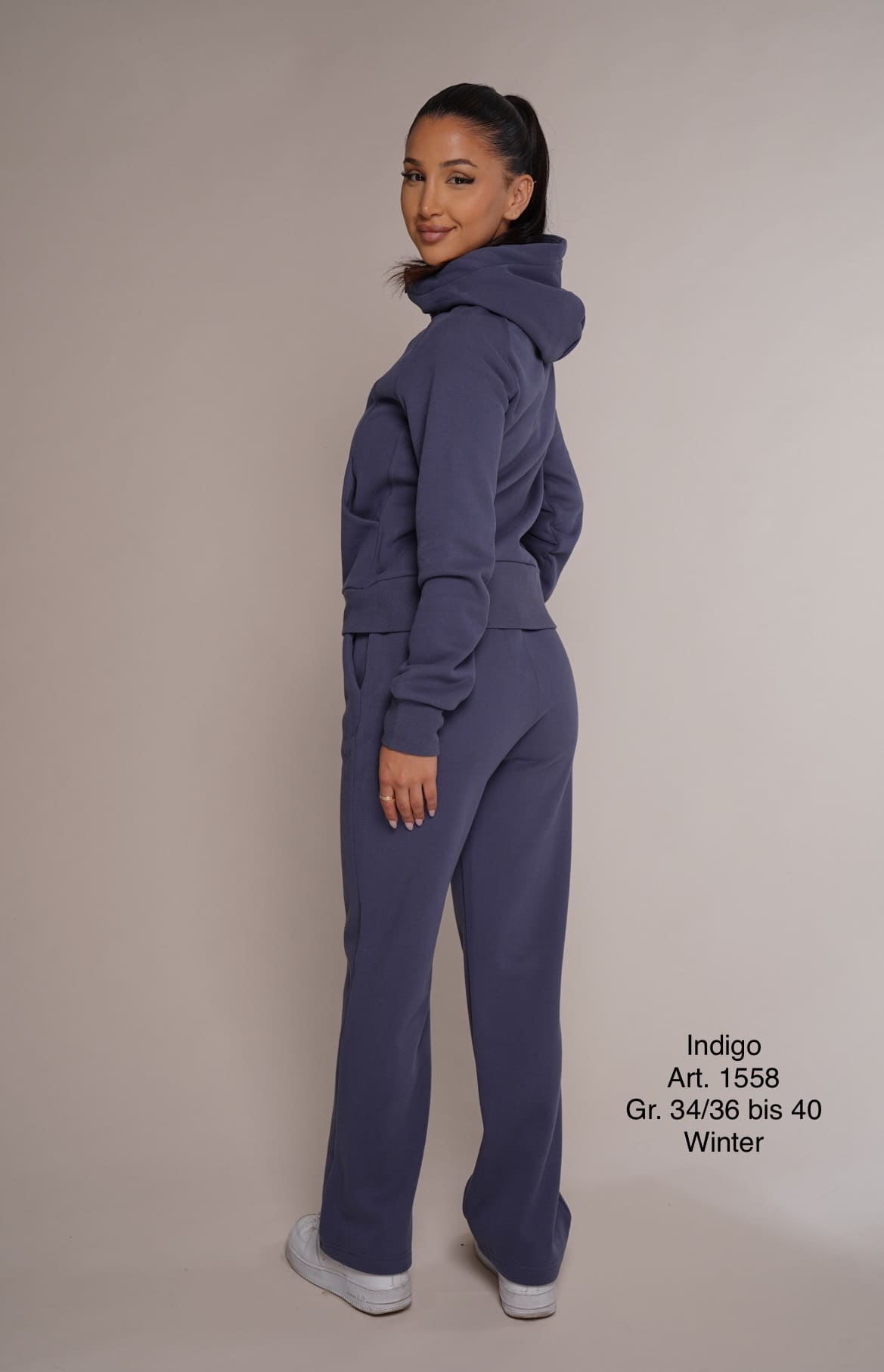 Winter 1558 | Freizeitanzug | Baumwolle | indigofarbe | tailliert | gerade Hose | Größen S, M, L - Fashion Mix