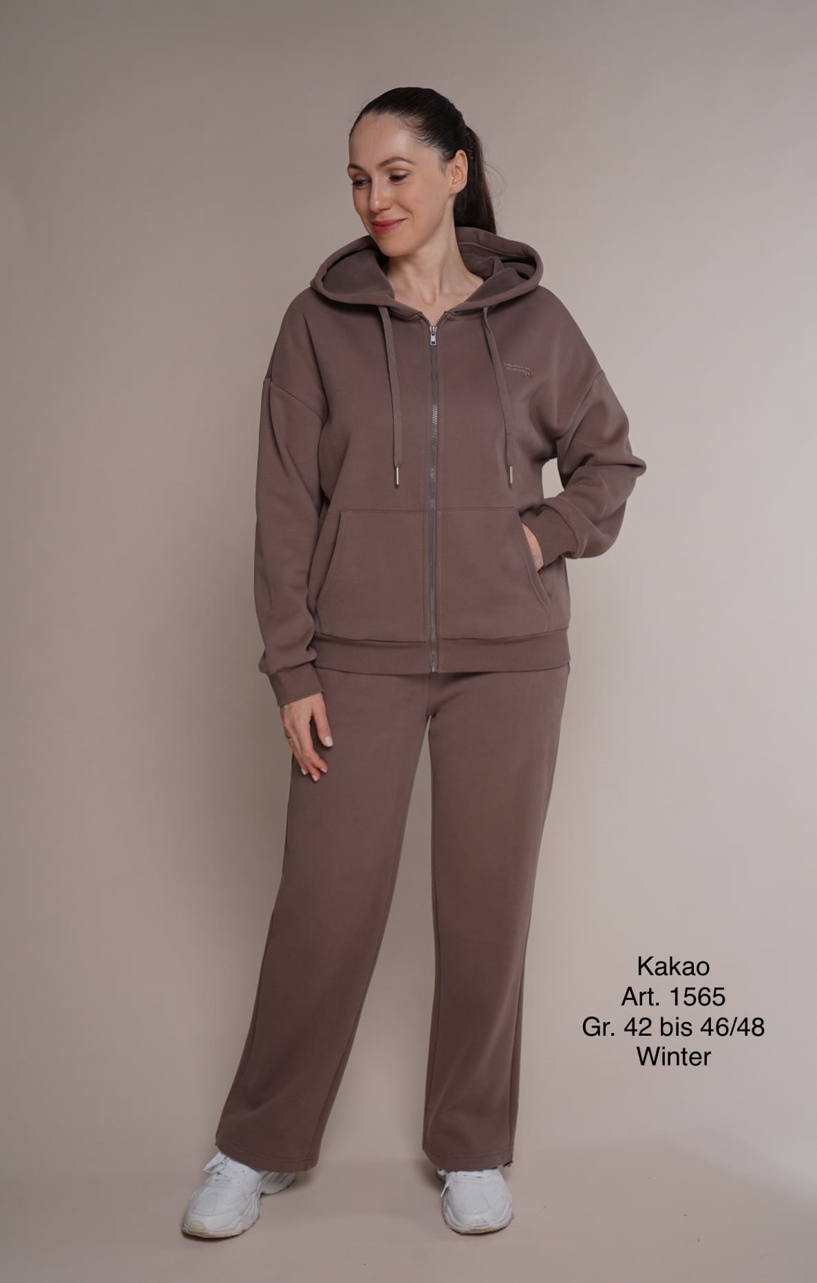 Winter 1565 | Freizeitanzug | Baumwolle | gerade Hose mit Tunnelzug | braun | Größen 2XL und 3XL