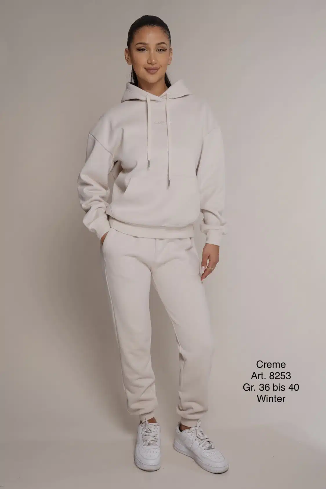 Winter 8253 | Freizeitanzug | Baumwolle | warm | Cremefarbe | Hosenbundband | Größen S, M, L