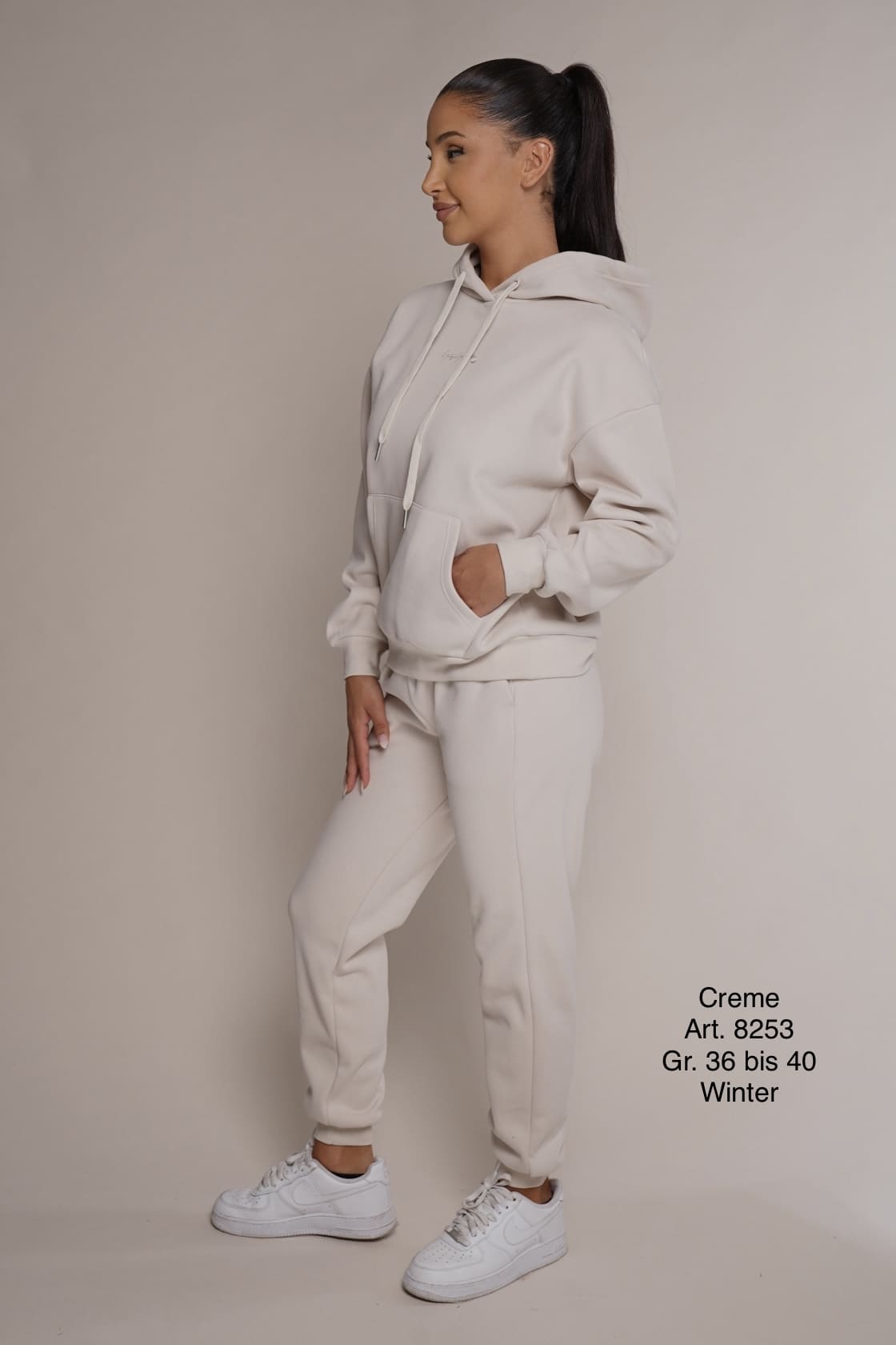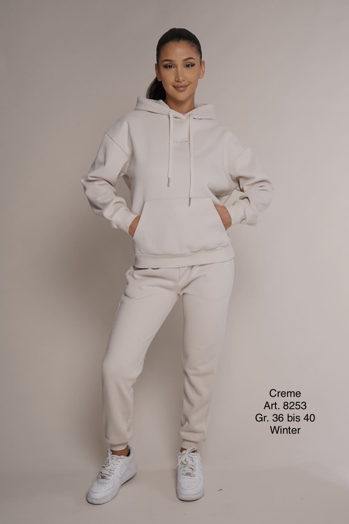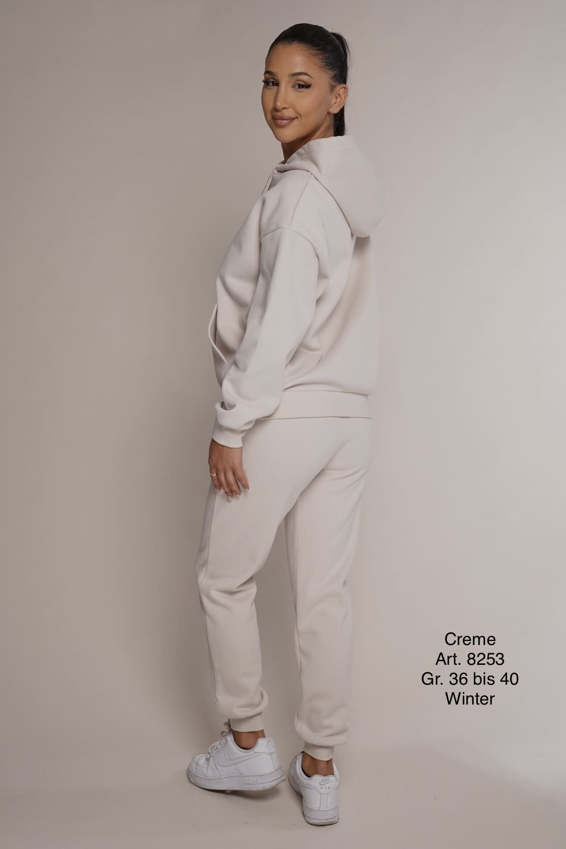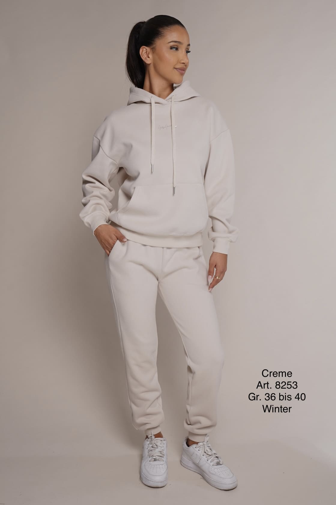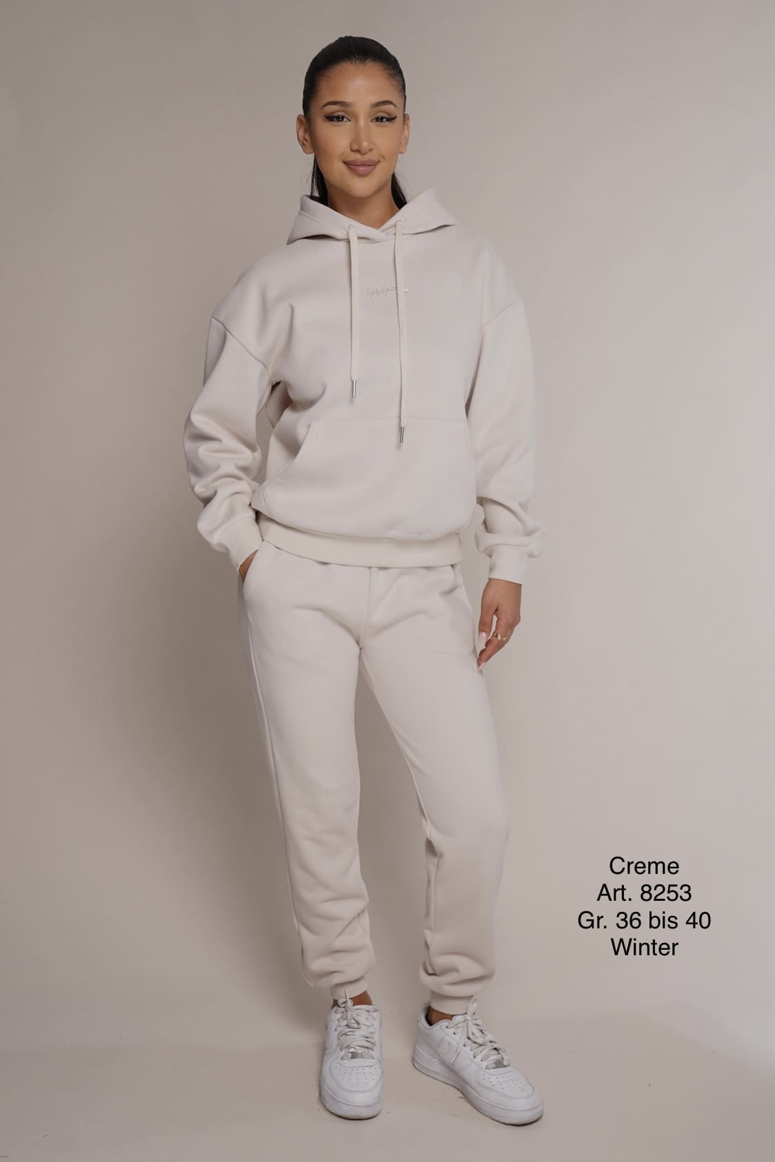 Winter 8253 | Freizeitanzug | Baumwolle | warm | Cremefarbe | Hosenbundband | Größen S, M, L