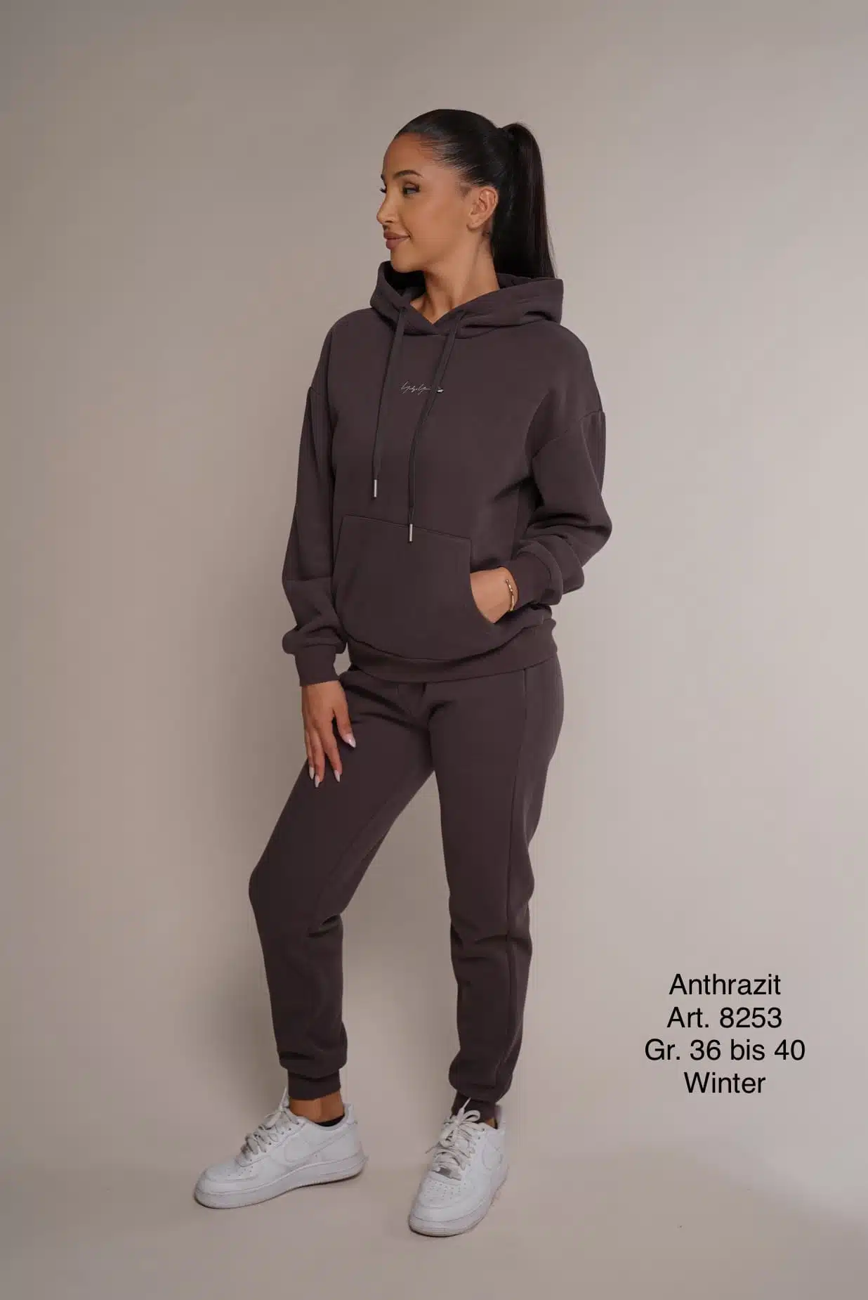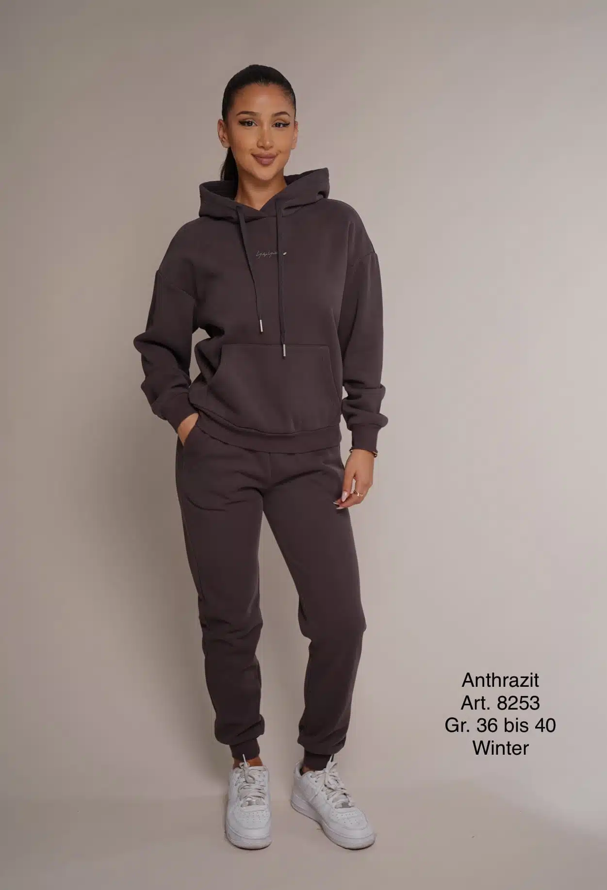 Winter 8253 | Freizeitanzug | Baumwolle | warm | grau | Hosenbundband | Größen S und L - Fashion Mix